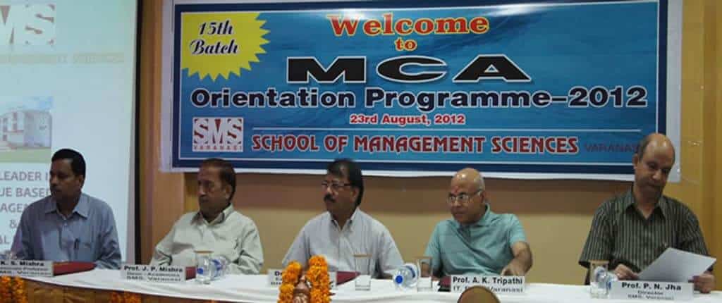 Each academic session of SMS Varanasi begins with an orientation programme. SMS Varanasi welcomes each of the newly admitted students with a sense of warmth in its lush green and serene atmosphere endowed with a building of architectural marvel. The   orientation programme begins with the lightning of lamp at the altar of goddess Saraswati and garlanding of her statue by the chief guest of the occasion and the other eminent dignitaries present at the function. At the very outset, the director of the institute greets the newly admitted students with his blessings and exhorts the students to strive for academic excellence, personal values and social concern. The students get a chance to interact with the industrial vanguards and the world class academicians and the trainers invited from the top industrial houses and the institutions of repute. On the very first day itself the students get to know what the industry expect of them and how to proceed to attain the excellence through academic rigour and corporate interface.
