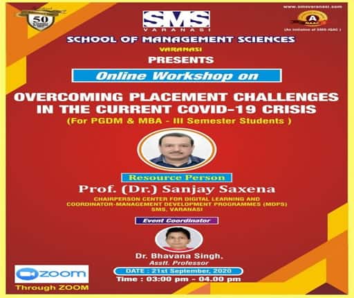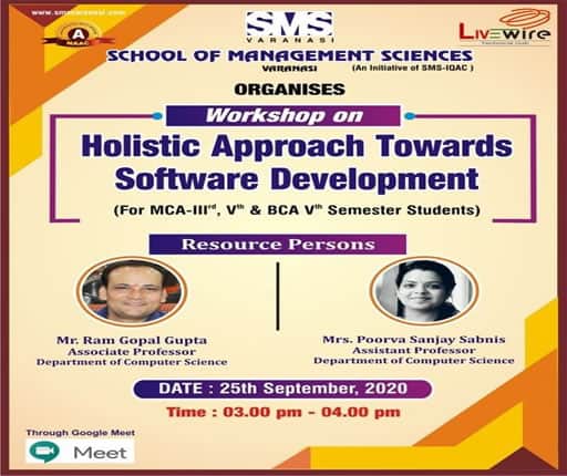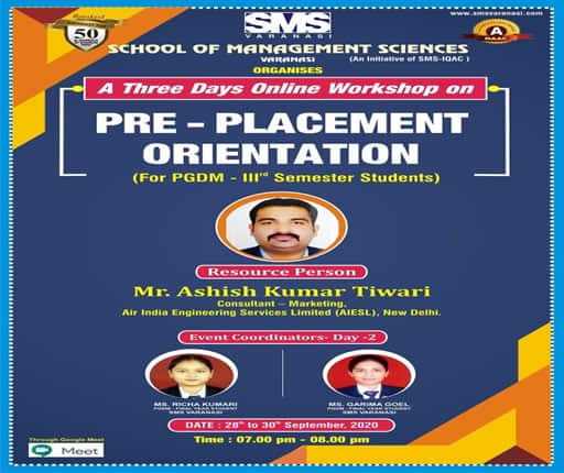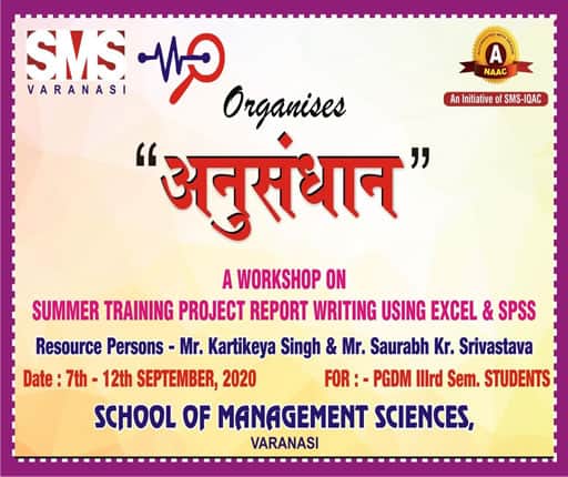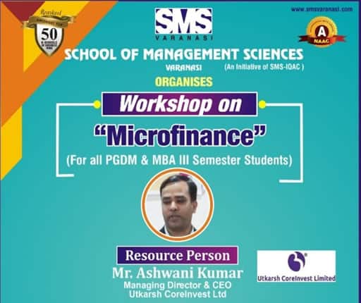 With the Objective of improving student’s personality and giving them platform to express their opinion about different topics, SMS Varanasi used to organize workshop for them. Management Practices; Recent changes in Marketing, HR and Finance areas; Soft Skills, personality development and upcoming trends in Computer Technologies are the common functional areas for such workshops. These workshops are meant for students of different Management and Computer related courses including MBA, MCA, MCOM, BBA, BCA , BCOM, BCOM(H) as well as B.A(H) Mass Comm.