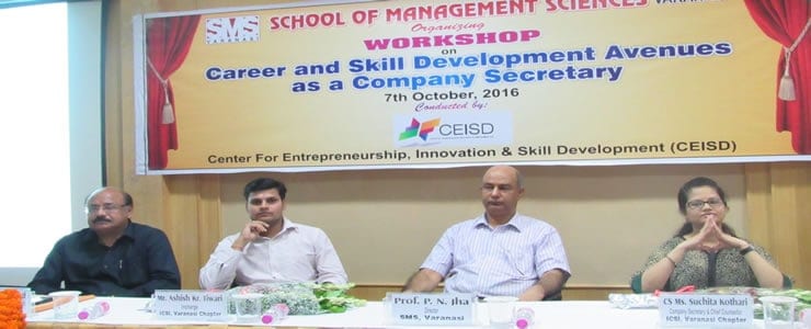 With the Objective of improving student’s personality and giving them platform to express their opinion about different topics, SMS Varanasi used to organize workshop for them. Management Practices; Recent changes in Marketing, HR and Finance areas; Soft Skills, personality development and upcoming trends in Computer Technologies are the common functional areas for such workshops. These workshops are meant for students of different Management and Computer related courses including MBA, MCA, MCOM, BBA, BCA , BCOM, BCOM(H) as well as B.A(H) Mass Comm.