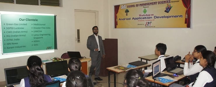 With the Objective of improving student’s personality and giving them platform to express their opinion about different topics, SMS Varanasi used to organize workshop for them. Management Practices; Recent changes in Marketing, HR and Finance areas; Soft Skills, personality development and upcoming trends in Computer Technologies are the common functional areas for such workshops. These workshops are meant for students of different Management and Computer related courses including MBA, MCA, MCOM, BBA, BCA , BCOM, BCOM(H) as well as B.A(H) Mass Comm.